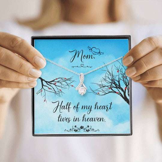 Mom Necklace, To My Mom Half Of My Heart Lives In Heaven Alluring Beauty Necklace For Mom