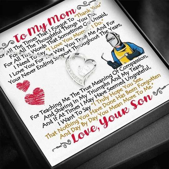 Mom Necklace, Welder Son Gift For Mom Forever Love Necklace Thank You For Everything
