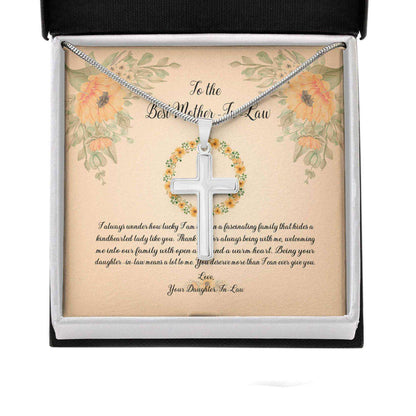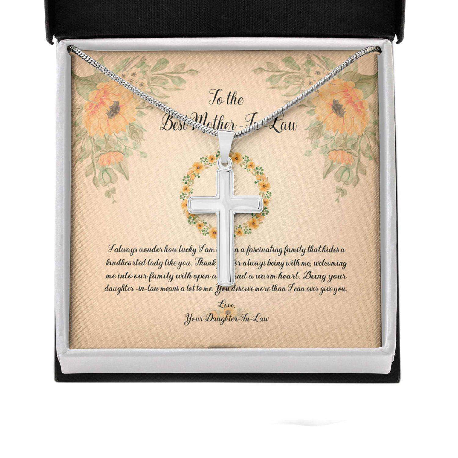 Mother In Law Necklace, Gift For Mother’S Day From Daughter To The Best Mother-In-Law Message Card Cross Necklace