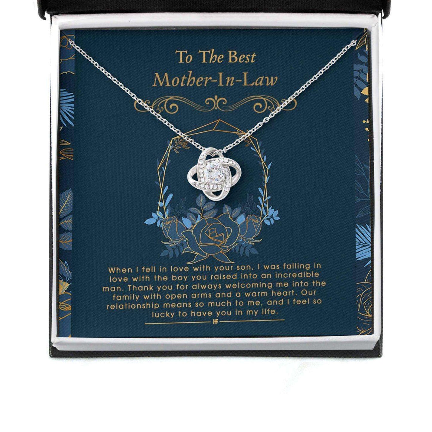 Mother In Law Necklace, Gift For Mother’S Day From Daughter V3, Message Card Love Knot Necklace