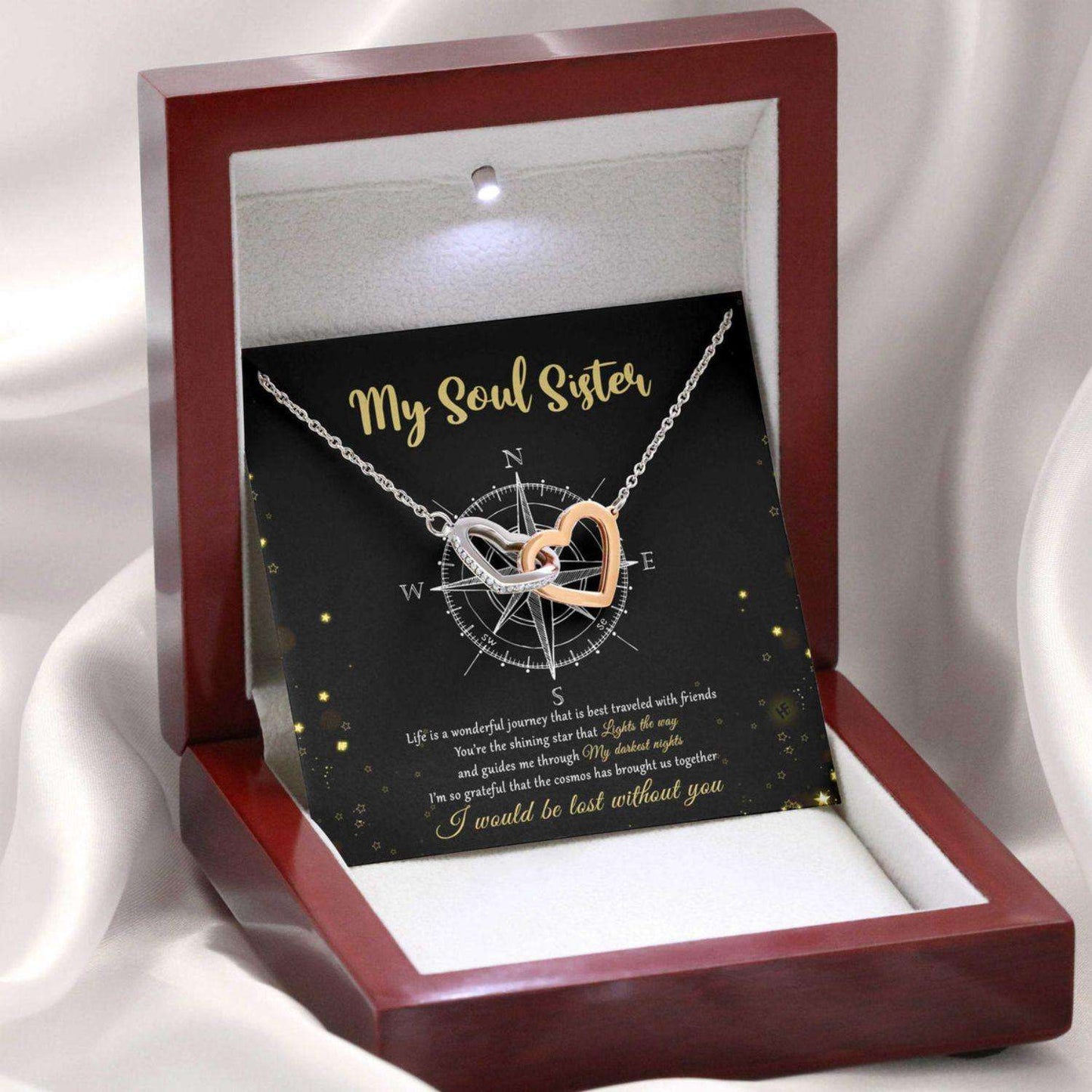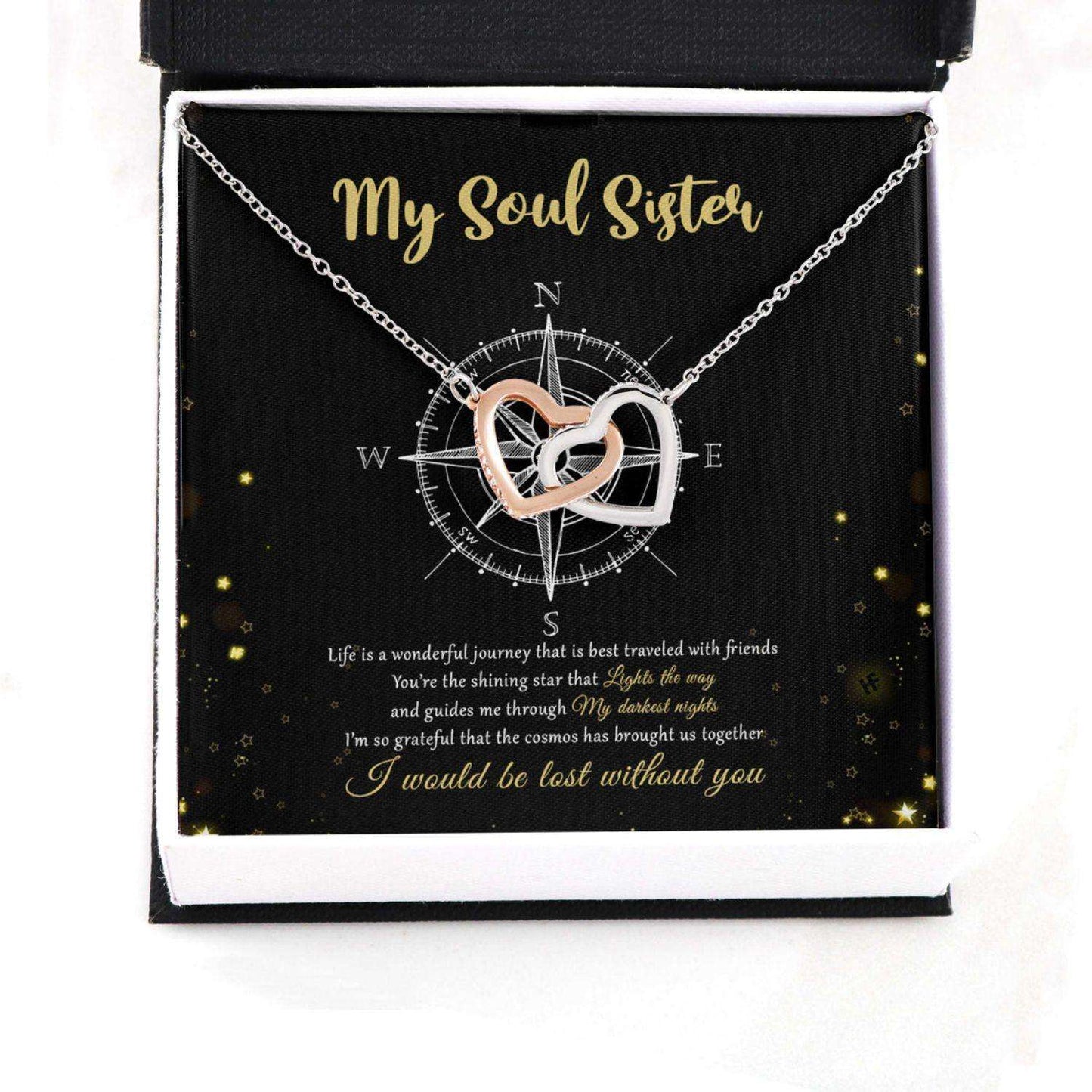 Sister Necklace, Soul Sister Necklace: Life Is A Journey Best Traveled With Friends, Compass Message Card Hearts Necklace