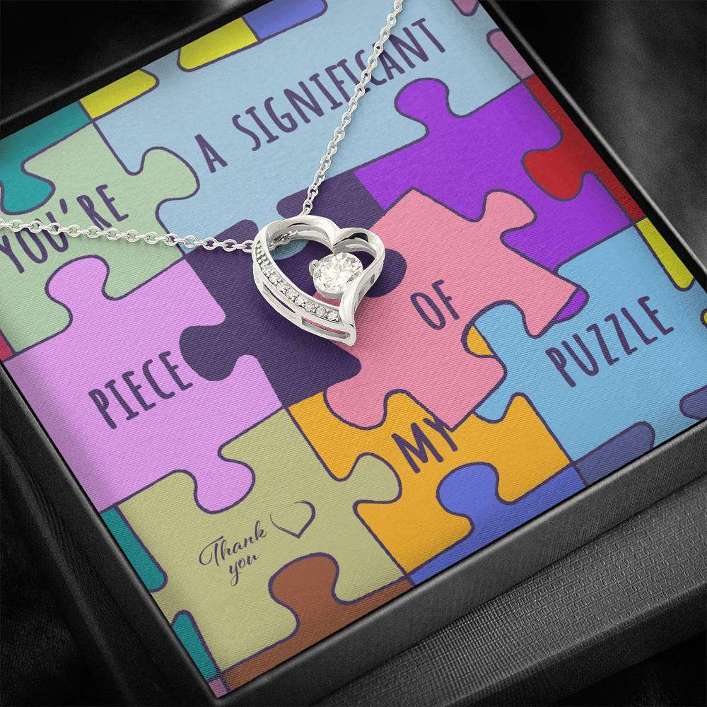Show your appreciation for the dedication and compassion of your autism teacher with the timeless elegance of the Forever Love Necklace. This exquisite necklace serves as a heartfelt token of gratitude for their unwavering support and commitment to making a difference in the lives of students with autism.